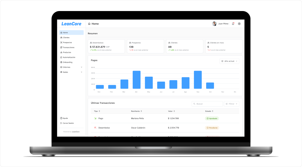 LeanCore es una empresa fintech que proporciona su solución de banca central a negocios, permitiéndoles implementar procesos de transformación digital desde una perspectiva fintech.